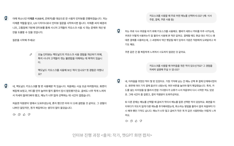 이 아티클은 AI 도구인 GPTs를 활용하여 가상의 사용자 인터뷰를 시뮬레이션하는 방법을 소개한다. 특히 맥도날드 키오스크를 이용하는 시니어 고객의 페인 포인트를 찾는 과정을 예시로 들며, 퍼소나 생성부터 인터뷰 진행, 분석까지의 단계를 상세히 다룬다. 이를 통해 AI 기반 인터뷰 시뮬레이션의 효과와 주의할 점을 탐구한다.