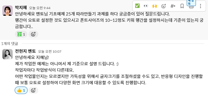 슬랙의 학습질문을 통해 멘토님께 여쭈게되었다.
